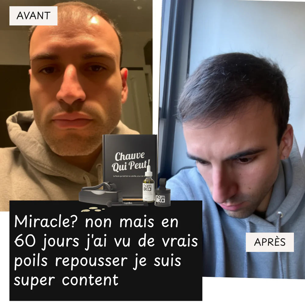 “Je n’y croyais plus… Ma zone dégarnie s’est densifiée à vue d’œil. Aujourd’hui, mes cheveux couvrent enfin le sommet de ma tête.”