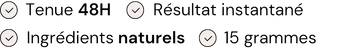 Tenue longue durée : cette accroche naturelle empêche la poudre de couler ou de glisser, même sous la douche, à la salle de sport ou au vent.