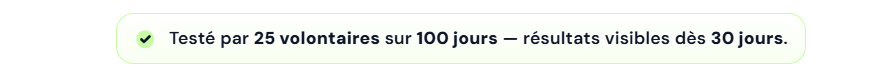 Nous → on a construit une formule complète, boostée et testée : 25 volontaires suivis 100 jours =